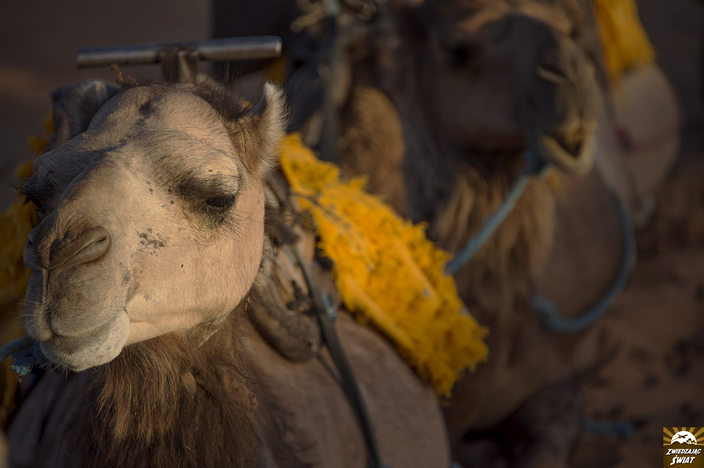 Wioska Merzouga leży u progu Sahary, blisko granicy z Algierią. To stąd ruszają wycieczki na pustynię, których celem są spektakularne złociste wydmy Erg Chebi, najwyższe w Maroku. Najczęściej wypady takie połączone są z noclegiem w namiotach pod rozgwieżdżonym pustynnym niebem. Taka noc, poprzedzona zachodem słońca podziwianym z jednej z okolicznych wydm, a potem kolacją w berberyjskim stylu, jest niezapomnianym przeżyciem. Kolejnego dnia warto wstać wcześnie rano, by na grzbiecie wielbłąda ruszyć na wschód słońca, wyłaniającego się znad piasków Sahary.