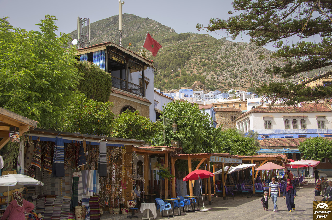 Sercem medyny Szafszawan jest Place Uta el-Hamam czyli Plac Gołębi. Trafimy tam po przyjemnym błądzeniu labiryntem wąskich uliczek. Na placu wznosi się meczet i kazba – dawna twierdza. Wokół, działa kilka knajpek i restauracji z tarasami na dachach.
