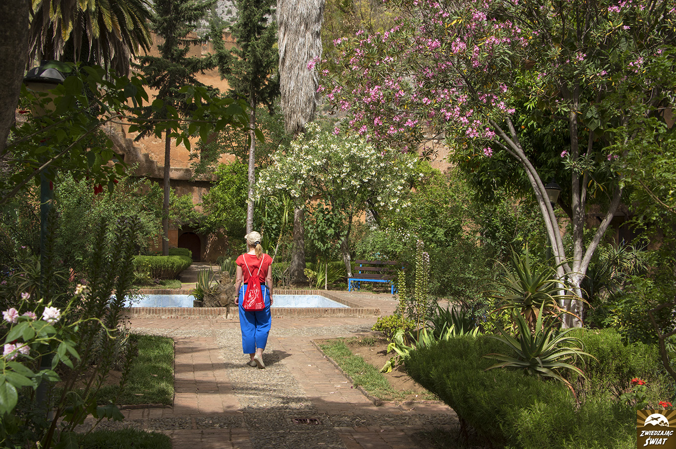 Widok z wieży kazby jednak nam nie wystarcza. Postanawiamy pójść jeszcze w kierunku ruin hiszpańskiego meczetu wznoszących się ponad miastem. Jedną z bram opuszczamy medynę. Dalej droga prowadzi nas w okolicę niewielkiej kaskady oraz zbiornika utworzonych przez podziemne źródło zwane Ras el-Ma. W miejscu tym kobiety w tradycyjny sposób robią pranie, wykorzystując kamienne tary. Powyżej widać wyraźną dróżkę – to nią w nieznośnym upale pniemy się ku naszemu celowi, czyli wspomnianym ruinom.