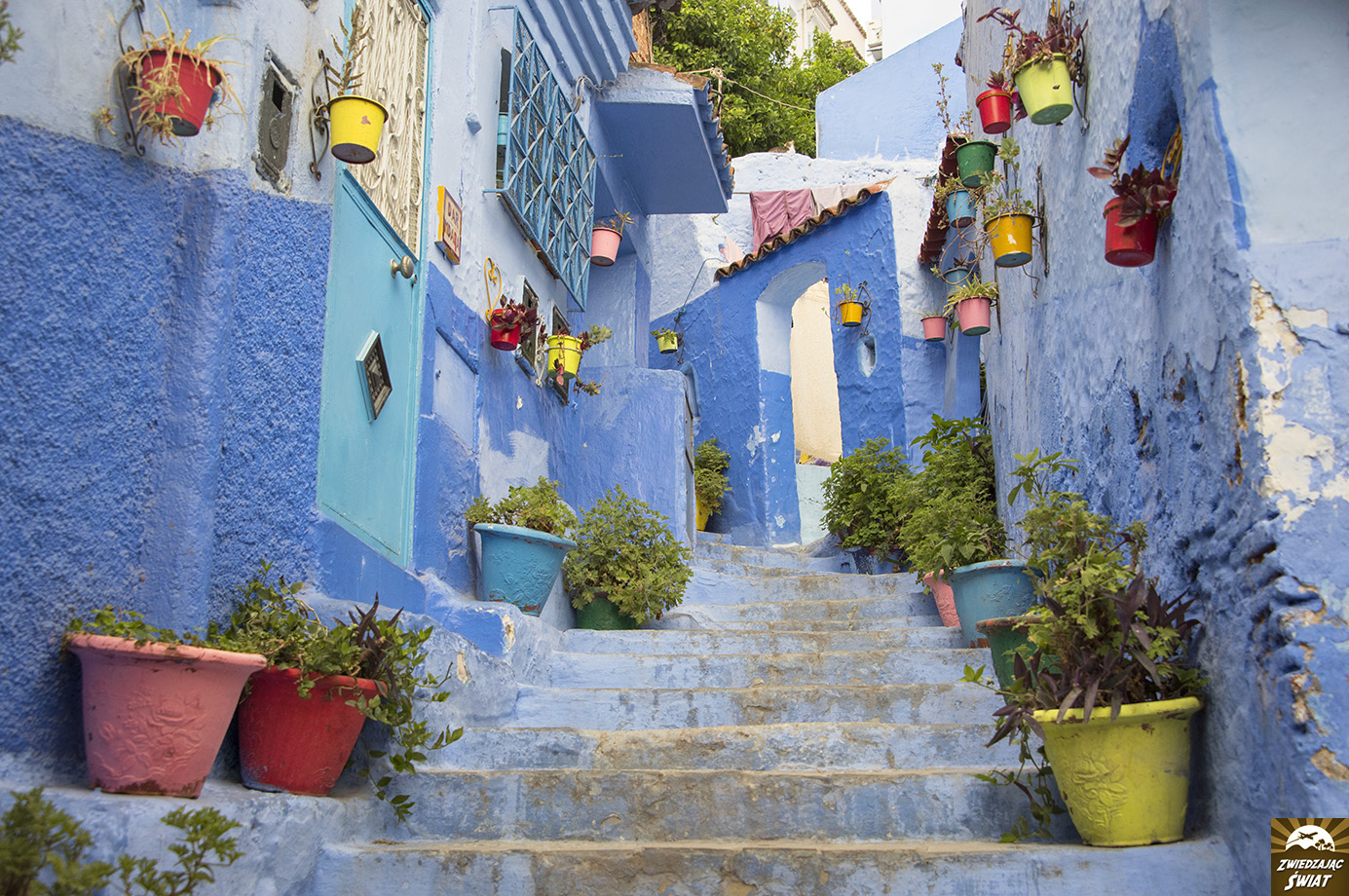 Ukryte w górach Rif miasteczko, w którym spoczywają szczątki muzułmańskich świętych mężów przez stulecia było niedostępne dla obcokrajowców. Niewierni mieli do niego całkowity zakaz wstępu. Czasy się jednak zmieniły i dzięki temu nasza dwójka po 3,5 godzinnej jeździe z Fez, mogła zagubić się w labiryncie biało-niebieskich uliczek medyny tego niezwykle malowniczego miasteczka.